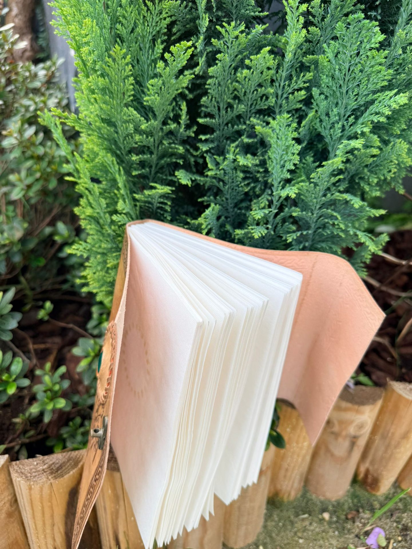 Découvrez ce grimoire enchanteur orné d'un attrape-rêve et d'une pierre d'agate verte, renfermant des pouvoirs mystiques sur ses feuilles parcheminées anciennes.